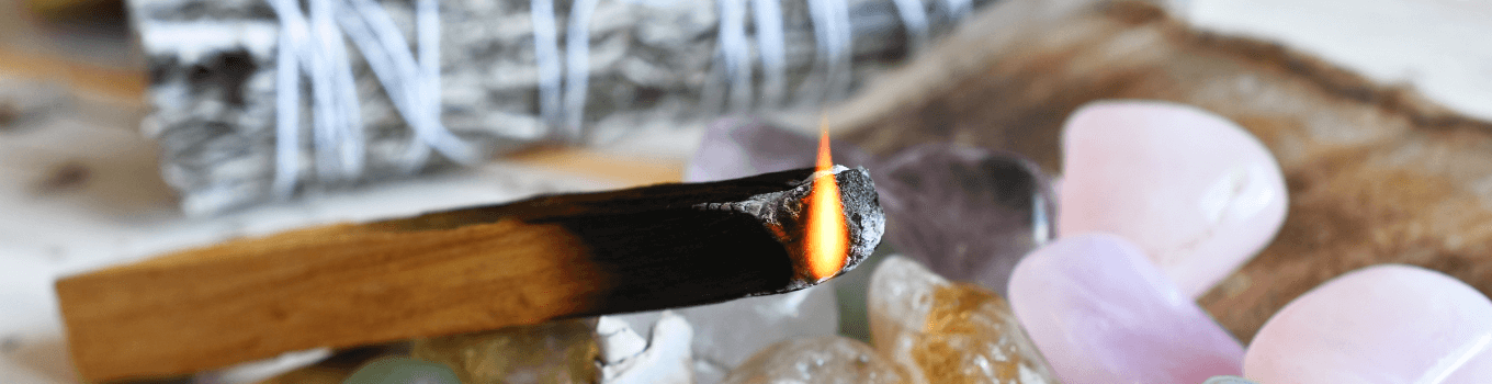 - La fumigation : Utilisez la fumée de plantes sacrées comme la sauge blanche ou le palo santo pour purifier vos cristaux. Passez simplement la pierre à travers la fumée pendant quelques secondes.